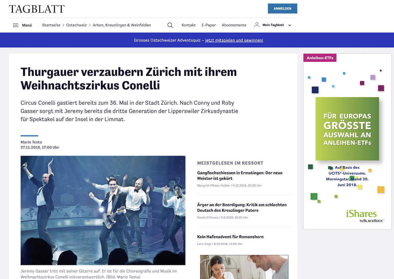 Thurgauer verzaubern Zürich mit ihrem Weihnachtszirkus Conelli 2018